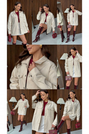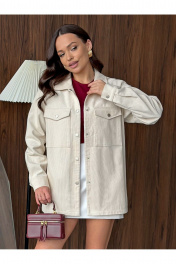 Рубашка женская из текстильной хлопковой ткани (вельвет-штрукс). По переду расположены накладные карманы с клапанами. Спущенное плечо. Рукав прямой одношовный. Низ рукава обработан манжетой. Вырез горловины оформлен воротником. Застежка рубашки на кнопках. Промеры на примере 42 р.: Длина изделия по спинке 72 см. ОГ - 110 см (спущенное плечо). Ширина по низу 112 см, длина рукава от крайней точки шеи с учетом манжеты 75 см. Ширина (1/2) манжеты по низу рукава 11 см.