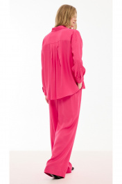Блузка: Фактура: гладкая. Ткань: блузочно-плательная. Силуэт: прямой. Воротник: рубашечный. Рукава: длинные. Застежка: планка на петли и пуговицы. Конструктивные элементы: манжеты на петли и пуговицы, планки на разрезах рукавов, накладной карман по левой детали переда. Брюки: Фактура: гладкая. Ткань: блузочно-плательная. Силуэт: прямой. Карманы: наклонные к боковым швам. Конструктивные элементы: отрезной пояс на эластичной тесьме. Тип посадки: высокая.