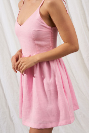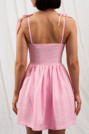 Леновый мини сарафан с вырезом и бретелями завязками Puella 3007 розовый_Викки