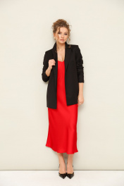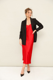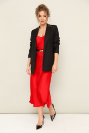 Комплект состоящий из жакета и платья. Платье-комбинация полуприлегающего силуэта, на регулируемых бретелях. Жакет прямого кроя. Ремень в комплекте.