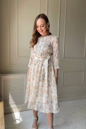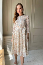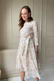Шифоновое платье на тонкой подкладке, с отрезной талией на резинке. Пояс в комплекте.Платье застегивается на пуговицы спереди