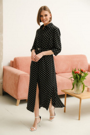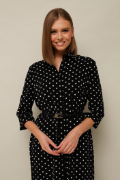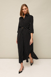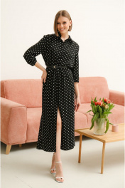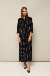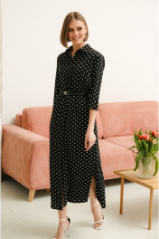 Платье прямого кроя, по бокам разрезы, ремешок в комплекте. Рукав с цельновыкроенным манжетом. Ткань неплотная, гладкая, приятная к телу