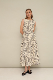 Эффектное платье-баллон, разведенное к низу в длине миди. Округлый вырез горловины. По спинке разрез с застежкой на пуговицу и навесную петлю. В боковых швах карманы. Платье на х/б подкладке. Пояс съемный из основной ткани .