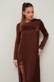Коричневое платье с разрезом и кружевной отделкой PUR PUR 11-329/1