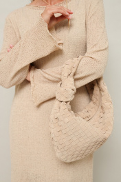 Стильное платье полуприлегающего силуэта из структурного трикотажа. Вырез горловины – лодочка. Рукава длинные, со спущенной линией втачивания плеча, слегка расширенные к низу. В комплекте прилагается нижнее платье-комбинация на бретельках с регуляторами из эластичного полотна.