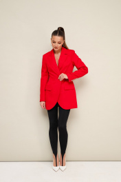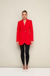 Стильный жакет полуприлегающего силуэта, выполнен из костюмной ткани. Смещенная застежка на петлю и пуговицу. Воротник пиджачного типа с отложными лацканами, край борта скругленный по низу жакета. Спереди обработаны прорезные карманы в рамку с клапанами. Рукава втачные, двухшовные со шлицами с застежкой на петли и пуговицы. Спинка с рельефами и средним швом. Жакет на подкладке.В комплекте прилагаются леггинсы со штрипками.