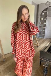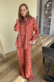 Костюм двойка: рубашка и брюки Идеальный летний вариант. Рубашка свободного силуэта, можно носить в распущенном и завязанном варианте Брюки широкие, на резинке. Длина рубашки 73 см. Длина рукава 42 см. Длина брюк 110,5 см с учетом пояса на резинке.