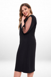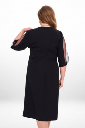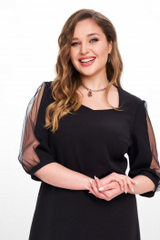 Маленькое черное платье, в котором вы очаровательны. Удачный фасон показывает фигуру в лучшем свете. Утонченный декор позволяет надевать платье на любое торжественное событие. Наряд будет выглядеть дорого и уместно. Не платье, а мечта! Чувственный акцент вносят красивые детали: фигурный вырез и рукава с полупрозрачной вставкой. Черный шифон на рукаве заложен в складку, что добавляет рукаву платья пышности. Оптимальная длина изделия (чуть ниже колена) гарантирует, что в нем будет комфортно женщине любого возраста. Уже думаете, какое событие украсит это вечернее платье? Если нет, то самое время помечтать. Без сомнений: ваш образ в этом платье вызовет бурю комплиментов. Насладитесь сполна ими и комфортной роскошью платья. Дл спинки 50-54р = 1,12м 56-58р = 1,15м Дл рукава 50-58р = 43,0см (с манжетой)