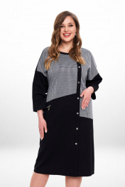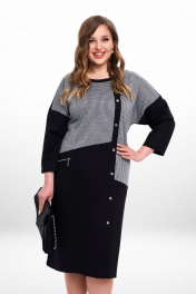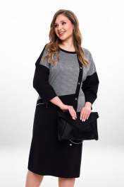 Ах, какая женщина! И какое платье выбрала! Удивительное трикотажное платье, способное в лучшем свете показать достоинства пышной фигуры. Наряд сшит из двух типов трикотажной ткани. Они гармонируют и по цвету, и по фактуре, создавая интересное сочетание горизонтальных и вертикальных линий. Декоративная планка с пуговицами зрительно стройнит, вытягивает силуэт. С левой стороны на платье есть небольшой кармашек на молнии. Практичным это платье больших размеров можно назвать потому, что оно без застёжек. Ткань эластичная, в них просто нет необходимости. Удобное, стильное платье миди станет любимым в вашем гардеробе. Дополните его классическими туфлями и небольшой сумочкой, чтобы выглядеть ещё более изящно. Длина изделия по спинке в 56,58,60 размерах 111 см (+/- 1см). Длина изделия по спинке в 62,64,66 размерах 117 см (+/- 1см). Длина от верхней плечевой точки до низа рукавав 56,58,60размерах 63 см (+ /- 1см). Длина от верхней плечевой точки до низа рукавав 62,64,66 размерах 65 см (+ /- 1см).