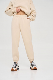 Женский костюм свободного облегания, состояший из укороченного худи с карманом-кенгуру по переду изделия и треников- джоггеров свободного облегания,с плотной фиксацией по поясу брюк, манжетами на резинке по низу, карманами в боковых швах, печатью-брендингом под левым карманом изделия. Треники-джоггеры свободного облегания с плотной фиксацией по поясу. Два кармана в боковых швах, прорезной карман с листочкой на правом заднем полотне брюк, манжеты на узкой резинке по низу изделия. Печать-брендинг на левом переднем полотне брюк. градация ростов по размерам: 42-164 44-164 46-170 48-170 50-170 52-176 54-176