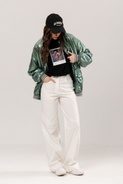 Бомбер свободного силуэта: •горловина, рукав и низ куртки с довязом •застежка на молнию •карманы прорезные с клапанами •на подкладке