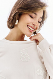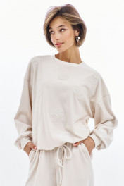 Комплект (джемпер + брюки). Джемпер свободного кроя: - спущенная линия плеча - округлая горловина - авторская вышивка Брюки палаццо: - притачной пояс на резинке - карманы с наклонным входом .