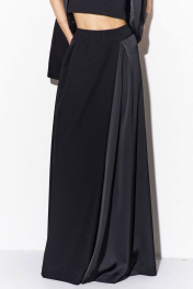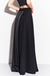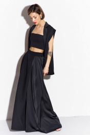 Комплект (жилетка и брюки): -жилетка свободного кроя, длиной ниже линии бедер -по талии спинки застрочены складки -воротник пиджачного -жилетка на подкладке -брюки широкие, длинные, на притачном поясе с резинкой - по верхнему срезу брюк заложены складки и выполнен запах по центру переда и спинки.