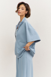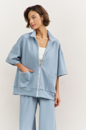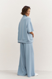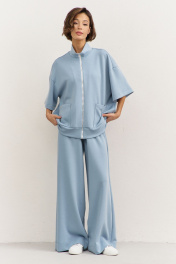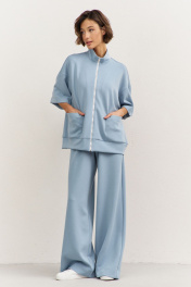 Комплект (толстовка+брюки). Толстовка свободного кроя: • спущенная линия плеча • воротник-стойка • застежка на молнию • накладные карманы • рукава втачные 3/4 • по низу притачная планка Брюки свободного кроя: • притачной пояс на резинке • в боковых швах карманы