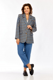 Жакет Rishelie 1014 клетка_чёрный+голубой+бежевый