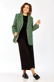 Жакет Rishelie 1014 клетка_чёрный+ярко-зелёный+бежевый