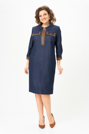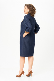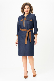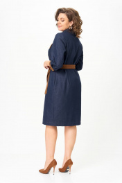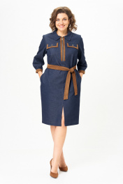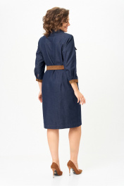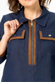 Платье женское выполнено из джинсовой ткани, полуприлегающего силуэта, длиной ниже колена, заужено к низу. По переду и спинке расположена горизонтальная кокетка. По спинке расположены талиевые выточки, моделирующие силуэт. По переду в шов притачивания кокетки вставлены клапана, по груди – выточки и накладные карманы. Воротник рубашечного типа. В верхней части переда расположена центральная застежка – молния. Рукав втачной одношовный, длиной ¾, с притачной манжетой. Платье дополнено съемным поясом. Джинсовое платье из натурального хлопка – это комфорт, свобода движений и практичность. Это платье отлично держит форму, делая выразительный акцент на фигуре своей обладательницы!