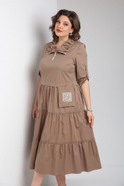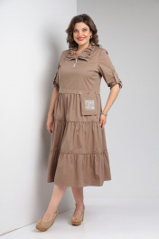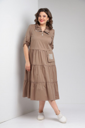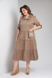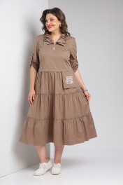 Платье бежевое с воланами и декоративными складками Rishelie 829 капучино