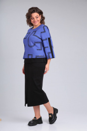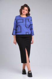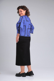 Деловой костюм юбка и блуза из трикотажа Rishelie 940 джинс+черный