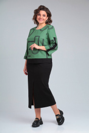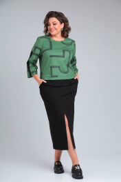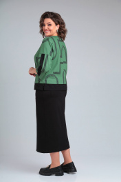 Деловой костюм юбка и блуза из трикотажа Rishelie 940 зеленый+черный