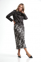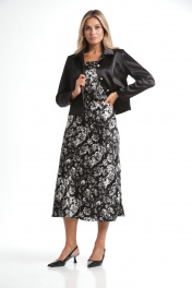 Женский комплект 3 предмета: жакет, топ и юбка для повседневного стиля Rishelie 970 черно-белый