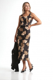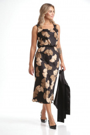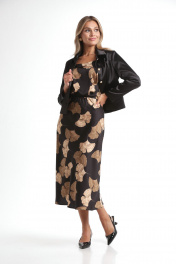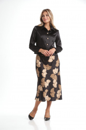 Жакет укороченный и юбка А-силуэта из текстиля Rishelie 970 черно-бежевый