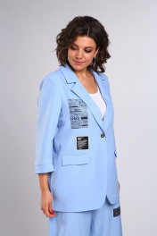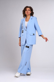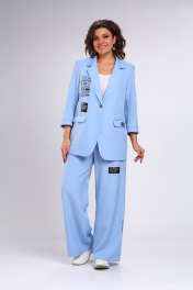 Комплект женский двухпредметный, состоящий из жакета и брюк. Стильный и непринужденный образ, который подчеркнет хрупкость и утонченность, скроет несовершенства фигуры. Комплект отлично подойдет как для повседневной носки, так и для праздничных выходов, достаточно дополнить его соответствующими аксессуарами. Предметы комплекта легко будут сочетаться с вещами из Вашего гардероба. Жакет с центральной застежкой на петли-пуговицы полуприлегающего силуэта. Перед на подкладке, в жакете прорезные карманы с клапаном, воротник пиджачного типа. По переду настрочены декоративные нашивки. Рукав втачной, одношовный с притачной манжетой. Брюки прямые, пояс на резинке, по бокам карманы. Внимание! Декоративные элементы и фурнитура могут отличаться от заявленного на фото
