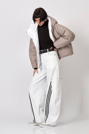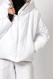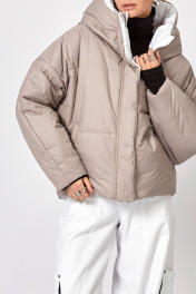 Куртка двухсторонняя: - свободный силуэт  - сезон: зима  - стёганая, утеплитель изософт 300  - спущенная линия плеча  - рукава двухшовные, расширенные к середине, зауженные к низу  - прорезные карманы с листочкой с обеих сторон  - глубокий притачной капюшон по линии горловины  - застёжка на двухстороннюю молнию и планку с кнопками  - на одной стороне спинки с кожаной этикеткой с тиснением Уход: - машинная стирка при температуре 40℃ и ниже - стирать на режиме "Синтетика" или "Деликатный",  вывернув наизнанку - не отбеливать