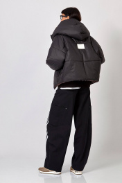 Куртка двухсторонняя: - свободный силуэт - сезон: зима - стёганая, утеплитель изософт 300 - спущенная линия плеча - рукава двухшовные, расширенные к середине, зауженные к низу - прорезные карманы с листочкой с обеих сторон - глубокий притачной капюшон по линии горловины - застёжка на двухстороннюю молнию и планку с кнопками - на одной стороне спинки с кожаной этикеткой с тиснением Уход: - машинная стирка при температуре 40℃ и ниже - стирать на режиме "Синтетика" или "Деликатный", вывернув наизнанку