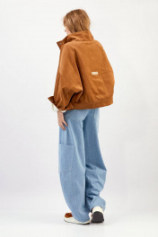 Куртка из вельвета : - свободный силуэт - утеплённая флисовой подкладкой - рукав покроя «летучая мышь» - передняя кокетка, цельнокроенная с рукавом - кокетка на спинке с вышитой аппликацией - передние карманы «кенгуру», утеплённые флисом - застёжка на планку с кнопками - низ рукава со складкой и манжетой, застёжка на кнопки - воротник-стойка, утеплённый