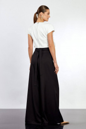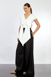 Топ: - прилегающего силуэта - спущенная линия плеча - спереди в фигурные подрезы вставлен бант - сзади в среднем шве застёжка на металлическую молнию - на подкладке