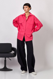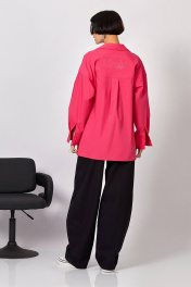 Блуза: - полуприлегающий силуэт - спущенная линия плеча - спереди фигурные карманы с фигурными клапанами - на спинке переходящая на перед кокетка с вышивкой; от кокетки вниз — бантовая складка - застёжка: потайная планка с пуговицами - рукава с манжетами и тремя складками по низу - воротник: рубашечный - разрезы в боковых швах - в комплекте пояс из основной ткани