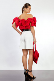 Топ: - силуэт прямой - перед и спинка одинаковые - с открытым декольте, вырез горловины горизонтальный, бретели спущены - вдоль линии горловины и плеч расположено шесть бантов НЕОБХОДИМО ОТПАРИТЬ! - отправляется только в фирменной упаковке