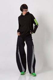 Худи с аппликациями: - силуэт прямой - линия плеча спущена - сверху двухслойный капюшон с небольшим запахом - спереди карман-кенгуру - по низу изделия и рукавов манжеты из основного материала - на левом рукаве печать и две аппликации из отделочных материалов с печатью; такие аппликации на капюшоне и на задней части манжета низа