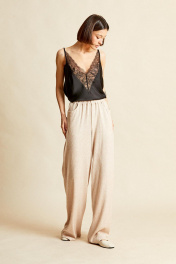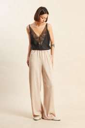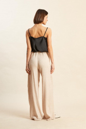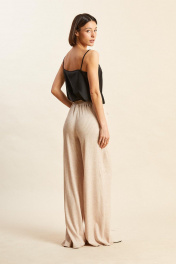 Брюки: - свободные, прямого силуэта; - средняя посадка; - по бокам карманы; - пояс на резинке.