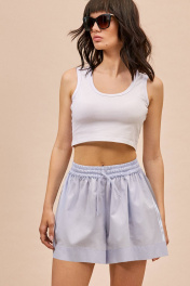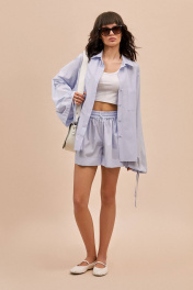 Шорты: - прямой силуэт - карманы в боковых швах - пояс на резинке с завязкой - широкая подгибка по низу - лампас