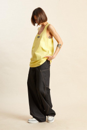 Майка-боксёрка: - силуэт трапеция; - линия плеча укорочена; - спинка по ширине заужена; - горловина круглая, расширена и углублена; - спереди и сзади печати.