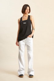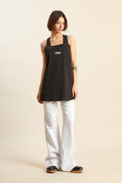 Майка-боксёрка: - силуэт трапеция; - линия плеча укорочена; - спинка по ширине заужена; - горловина круглая, расширена и углублена; - спереди авторрская печать.