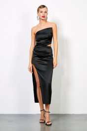 Платье черное в нарядном стиле с асимметричным вырезом Rivoli 7183
