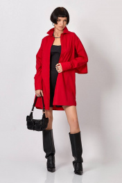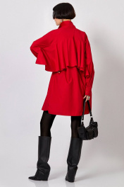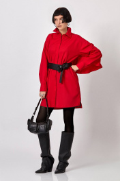 Платье-рубашка: - прямой силуэт - воротник стояче-отложенной - застёжка на потайную планку с пуговицами - спущенная линия плеча - рукав двухшовный с манжетой - карманы в боковых швах - по спинке кокетка - по рукавам и спинке вставлен волан длиной 30 см