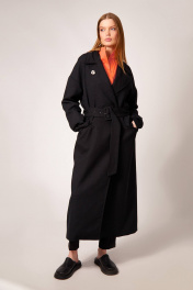 Жакет длинный на подкладке с широким воротником и поясом Rivoli 8052 чёрный