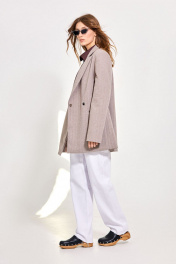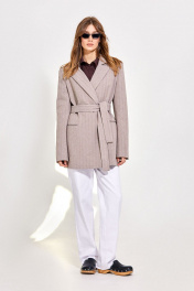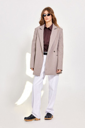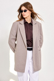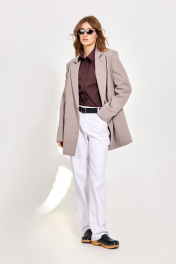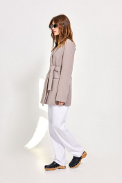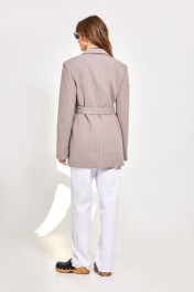 Жакет: - полуприталенный силуэт - пиджачный воротник - спинка со средним швом - карманы без клапанов - застежка на потайные кнопки - без шлёвок, пояс в комплекте - удлинённый, низ прямой