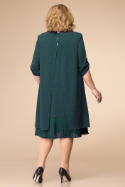 Платье женское относится к нарядной торжественной одежде. Платье расширенное к низу, длиной за колено. Перед с двумя нагрудными вытачками. Спинка отлетая, фигурная, с двумя вертикальными планками, фиксирующимися на три обметанные петли и три пришивные пуговицы. Горловина круглая, обтачная, без воротника. Рукав втачной, одно шовный, длиной 3\4 с настрочным хлястиком, фиксирующим длину рукава с одной обметанной петлей и одной пришивной пуговицей. Платье на подкладке. Низ подкладки с притачным воланом из отделочной ткани. Перед платья декорируется съемной брошью. Платье с плечевыми накладками. Длина спинки 102 см. Длина рукава 41 см.