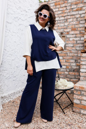 Блуза, брюки, жилет Romanovich Style 3-2510 синий+белый