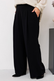Комплект женский относится к торжественной одежде. Комплект женский 3-х предметный джемпер, топ и брюки. Джемпер прямого силуэта, с фигурным низом. Перед и спинка цельнокроеные, с притачной планкой из отделочной ткани по горловине. Джемпер со спущенным плечом. Рукав втачной, одно шовный, длинный, с притачной манжетой, собранной на эластичную тесьму. Джемпер без плечевых накладок. Топ женский прямого силуэта, длиной до линии бёдер. Перед с 2-мя нагрудными вытачками. Спинка цельнокроеная. Горловина круглая, без воротника. Проймы обтачные. Топ на подкладке. Брюки женские прямые широкие, длинные. Передние половинки с односторонними складками и карманами в боковых швах. Задние половинки с таллиевыми вытачками. Брюки с притачным поясом, собранным на эластичную тесьму, закреплённую 2-мя отделочными строчками.
