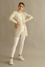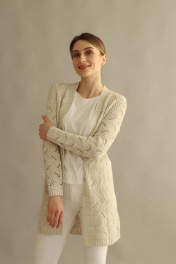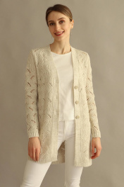 Бежевый кардиган из хлопка с ажурным переплетением Romgil 380ТЗ светло-бежевый(164)