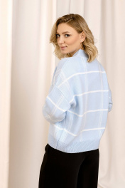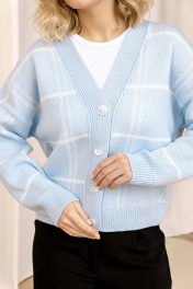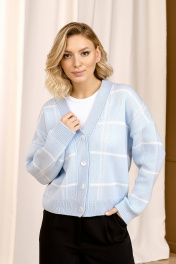 Голубой краткий кардиган из трикотажа с оригинальным принтом Romgil 685ПТЗ бледно-голубой,белый