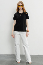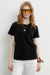 Эта стильная футболка — идеальный выбор для тех, кто ценит классику и универсальность в повседневной моде. Она выполнена из мягкой и качественной ткани, обеспечивающей комфорт на протяжении всего дня. Особенности: Классический крой с короткими рукавами и круглым вырезом, который подчеркивает изящность шеи. Универсальный дизайн позволяет носить футболку как с брюками и юбками, так и с джинсами, создавая разнообразные образы. Легкая и дышащая ткань обеспечивает комфорт и свободу движений, что делает её идеальной для любой погоды. Эта футболка станет отличным дополнением к вашему гардеробу, подчеркивая ваш вкус и стиль. Она идеально сочетается с различными аксессуарами и обувью, создавая завершенный и гармоничный образ.