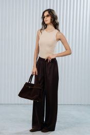 Эти стильные и универсальные брюки станут отличным дополнением вашего гардероба! Они идеально подходят для создания элегантных и современных луков, сочетая в себе комфорт, лаконичность и универсальность. Брюки отлично впишутся в офисный стиль, деловые встречи или повседневные прогулки по городу. Основные особенности брюк: Цвет: бежевый, который легко сочетается с различными оттенками и добавляет образу лёгкость и универсальность; Дизайн: брюки с высокой посадкой и широким кроем, что делает их удобными и стильными. Пуговица на поясе придаёт изделию аккуратность и завершённость; Материал: качественная и приятная на ощупь ткань, которая отлично держит форму и обеспечивает комфорт в течение всего дня; Крой: свободный и удлинённый, что делает брюки универсальными для различных стилей и случаев. С чем носить: Брюки отлично сочетаются с облегающими топами, блузками или свитерами, как на фото. Для завершения образа подойдут туфли на каблуке, лодочки или стильные кроссовки. Уход за изделием: Рекомендуется стирка в деликатном режиме при температуре до 30°C или химчистка. Не использовать отбеливатели. Сушить в расправленном виде, избегая прямых солнечных лучей.