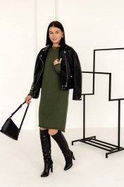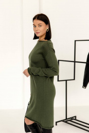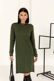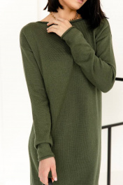 Длинное плательное из вязаного трикотажа с длинными рукавами Romgil РВ0002-ШЕ5 оливковый